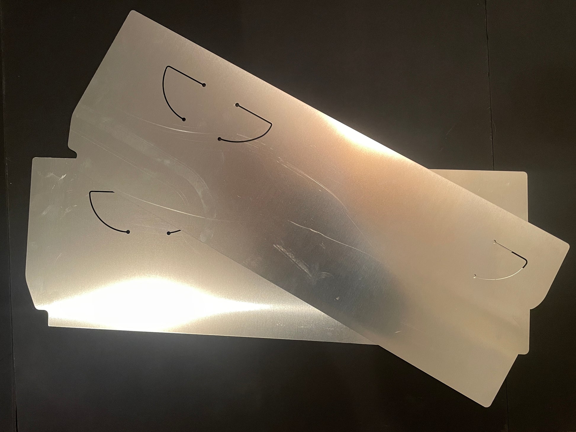 These are 6061 aluminum, laser cut to match the original cardboard panels. Unlike the original ones these won't warp, won't crack, and don't have to be replaced. Ive personally gone through two sets of the cardboard ones so I figured it was time to make a change. These are shipped straight off the laser and have no prep so they may have scratches and or other marks from machining.